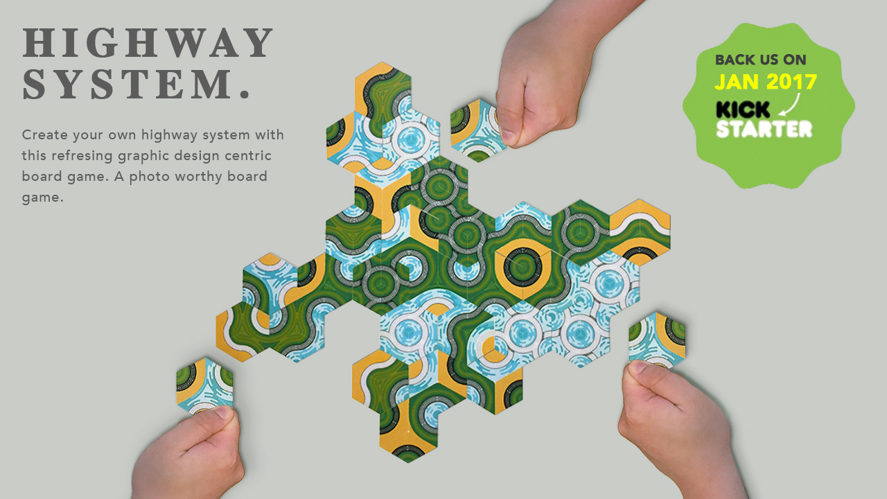 Highway System 是一款抽象的拼圖遊戲,玩家利用手上的拼圖,完成最長的道路為之勝利。每個拼圖有2個主要原素,分別是環境及道路。環境分為海,森,土。道路用上3個不同顏色代表不同玩家。遊戲過程很簡單,每個回合選擇抽拼圖或放置拼圖,放置拼圖只有二個規則,1) 必須跟剛剛放下的拼圖相連,2)新的拼圖跟剛剛放下的拼圖有一個環境是相連。遊戲系統的特色是可以連鎖放置拼圖,如果新拼圖跟對上一塊拼圖的2兩個環境都相連,就可以再放置多一塊拼圖,直到不能再進行連鎖。當玩家用光手上所有的拼圖,遊戲就會完結,看看哪個玩家的路線最長就得到勝利。